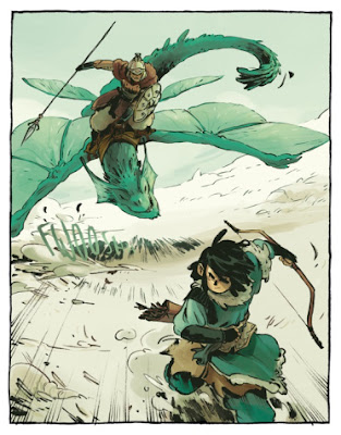 El pasado mes de junio —con bastante retraso, por tanto, de éste que escribe para rendir cuenta de la presente obra, mea culpa— se ponía en marcha esta nueva serie de corte fantástico-épico. Su primer tomo: Ari, cazador de dragones. En él, Gutiérrez y Vicente dan vida en la forma de un delicioso volumen a color a las aventuras de su protagonista, el hábil batidor Ari, presentándonos la gélida isla-continente de Nilak, un mundo que languidece y donde la lucha por la supervivencia se ha convertido en una constante diaria.